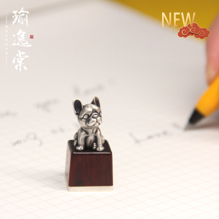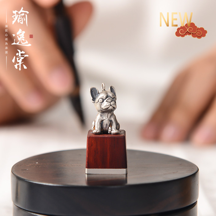 Yu Yitang Sterling Silver Puppy Seal Pendant Couple Necklace Men's and Women's Pendant Engraving Original Love Letter Car Pendulum