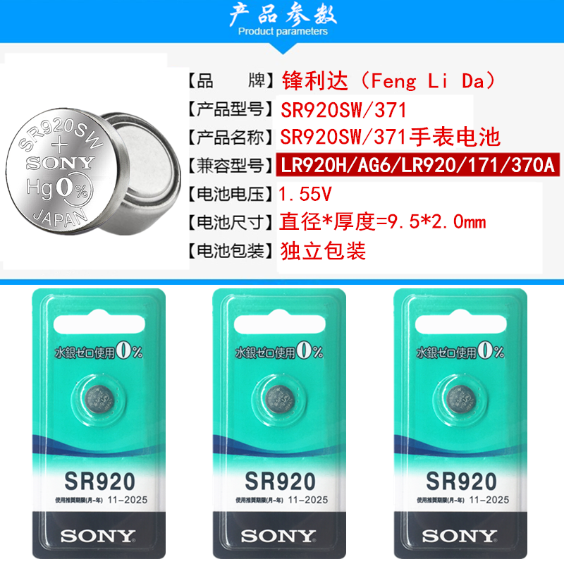 Sony LR920 171 watches battery SR920SW AG6 371 AG6 LR920H button BATTERY SR921