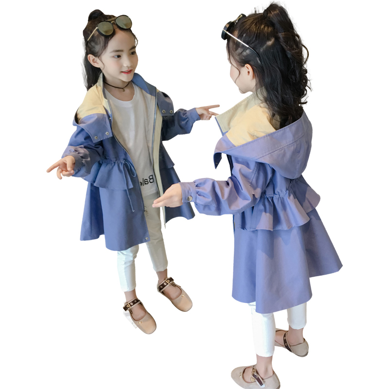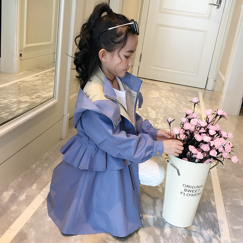 Net red girls spring and autumn 2021 new explosive children's big children's middle and long version of the autumn fashion Foreign windbreaker jacket