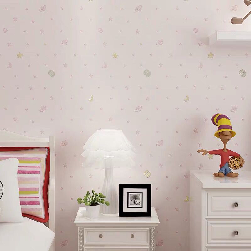 Children's House Cartoon Unwoven Fabric Wallpaper Stars Clouds Modern Brief Cozy Pink Boy Girl Bedroom Wallpaper