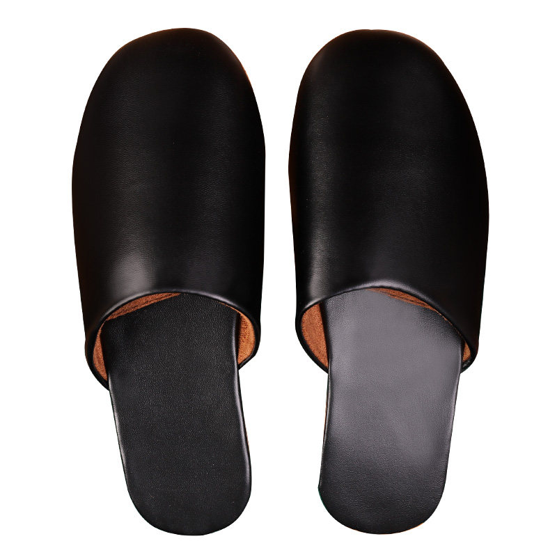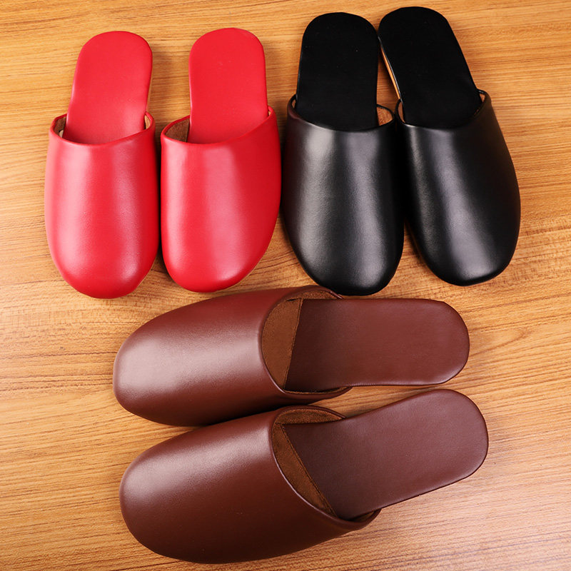 Hotel fitting room Powder room Dressing room Clubhouse high-end LOGO custom spring and Autumn Baotou thin beef tendon bottom leather slippers