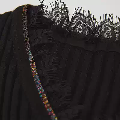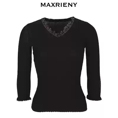 MAXRIENYgina Gina with vintage V-neck knit top long sleeve lace shirt short base shirt
