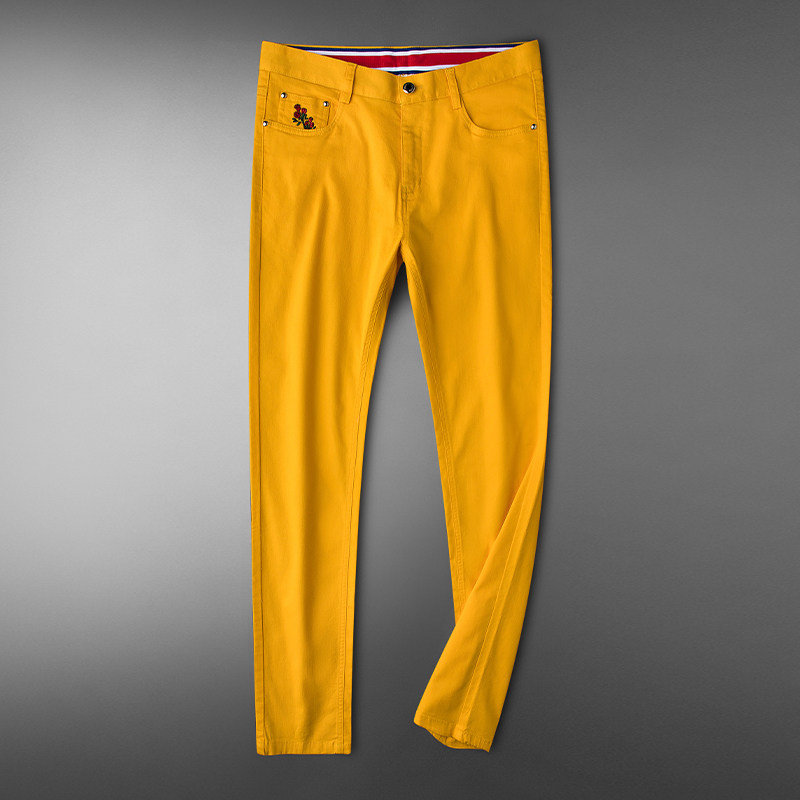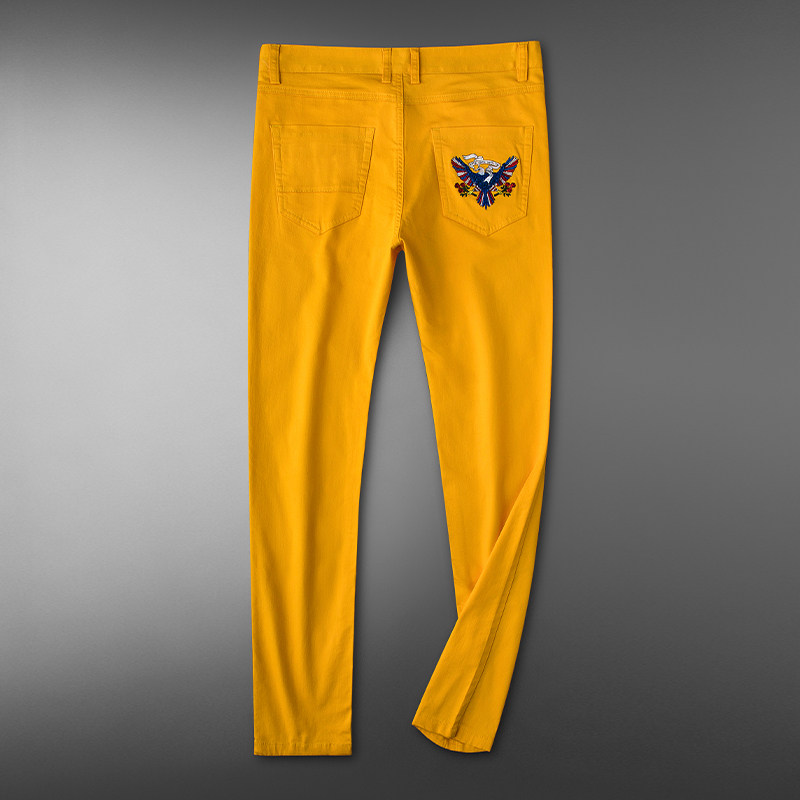 Fall Colour jeans Men's body stretch trousers wear resistant men handsome and casual embroidered pants male yellow tide