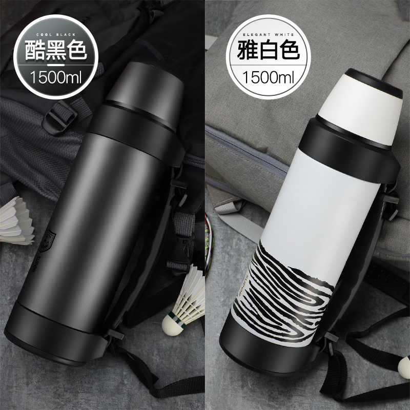 Black 1500ML+ with pot case (send strap) (304 stainless steel) Black 1500ML + feed strap (304 stainless steel) Black 1500ML+ (60 hours insulation) (304 stainless steel) Silver 1500ML+ (60 hours insulation) (304 stainless steel) Black 2000ML+ (60 hours insulation) (304 stainless steel) Silver 2000ML+ (60 hours insulation) (304 stainless steel) (Night Black -2L) Free detachable back rope (Desert Gold-2L). A detachable back strap is provided