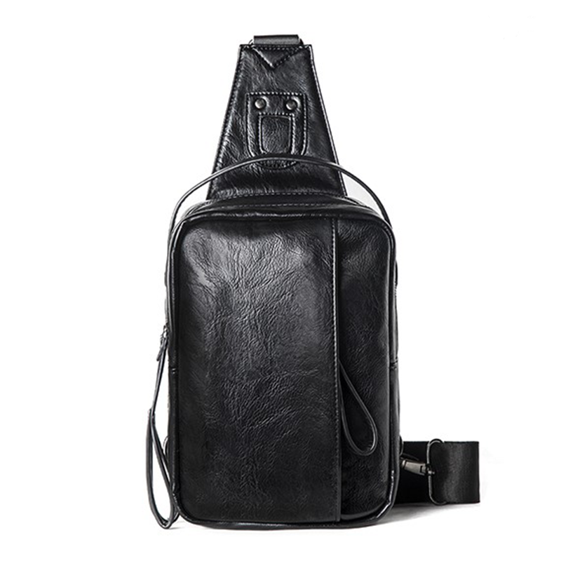 Leather Chest Bag Men's Sports and Leisure Shoulder Bag Fashion Messenger Bag Men's Bag Korean Trendy Student Waist Bag Small Backpack