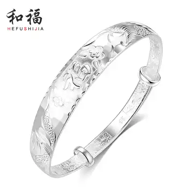 999 sterling silver bracelet female Dragon Phoenix blessing word foot silver bracelet push solid bracelet for mother girlfriend birthday gift