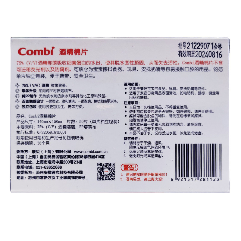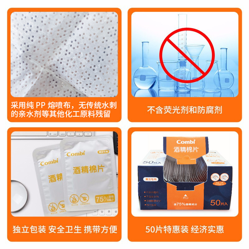Combe disposable alcohol cotton tablets 50 pieces * 2 boxes travel portable sterilization alcohol wipes disinfection baby wipes