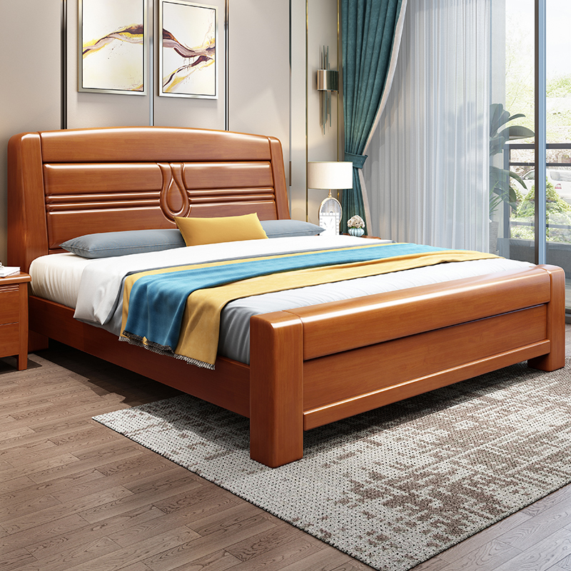 Solid wood bed 1 8 meters double bed modern minimalist 1 5 meters Chinese style high box bed factory direct sales bed marriage bed master bedroom