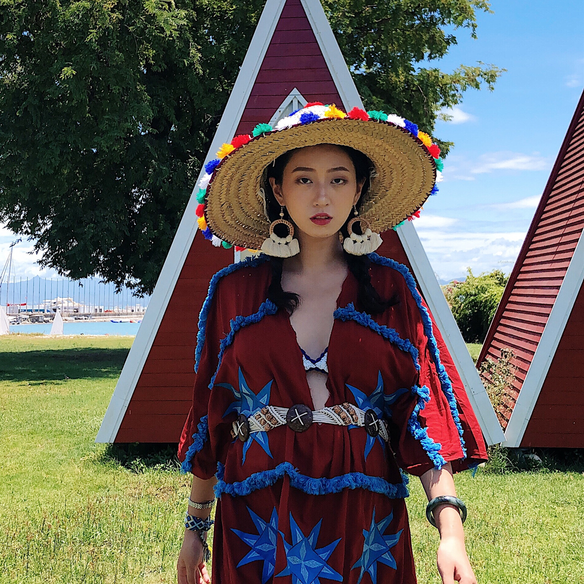Cat's Inn European and American Bohemian Vacation Style Exaggerated Tassel Earrings Handmade Rattan Earrings