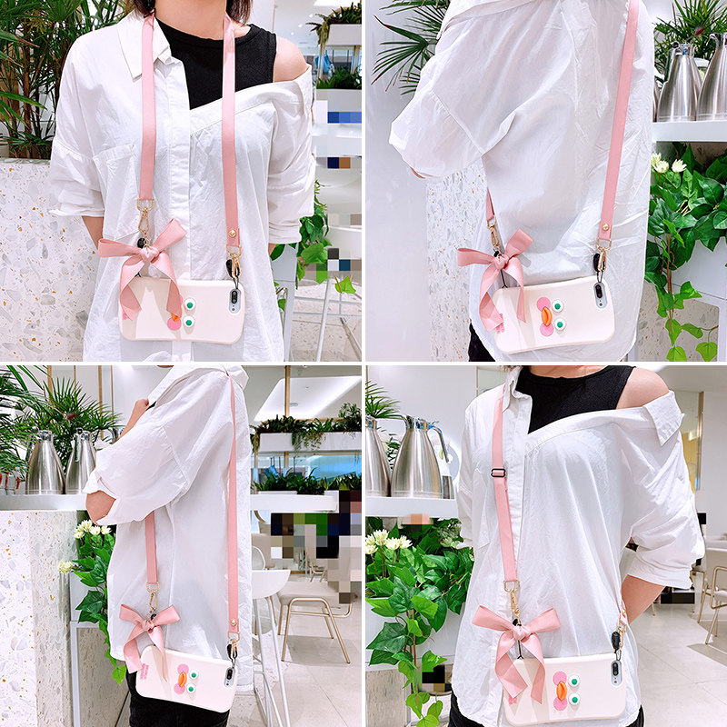 Shoot 3 free 1 messenger baby bag mobile phone lanyard Universal mobile phone protective case hanging neck long rope adjustable tide brand bow lengthened girl bag spare baby bag can shoulder camera lanyard Japanese and Korean personality