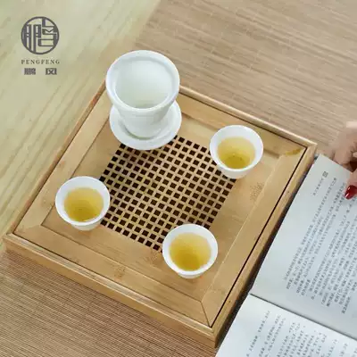 Bamboo tea tray household simple water storage type rectangular small bamboo tea table Japanese tea tray large square Tea Sea