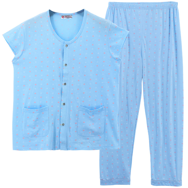 Thin middle-aged and elderly pure cotton cardigan jacket air-conditioning pants mother plus fertilizer plus full cotton short-sleeved pajamas home service suit
