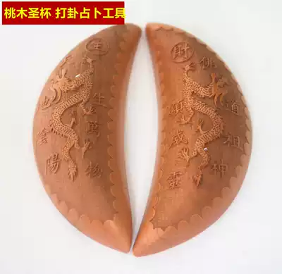 Pure copper Holy Grail, Buddhist and Taoist supplies, natural peach wood instruments, sacred hexagram, Yin and Yang Cup, Feng Shui large