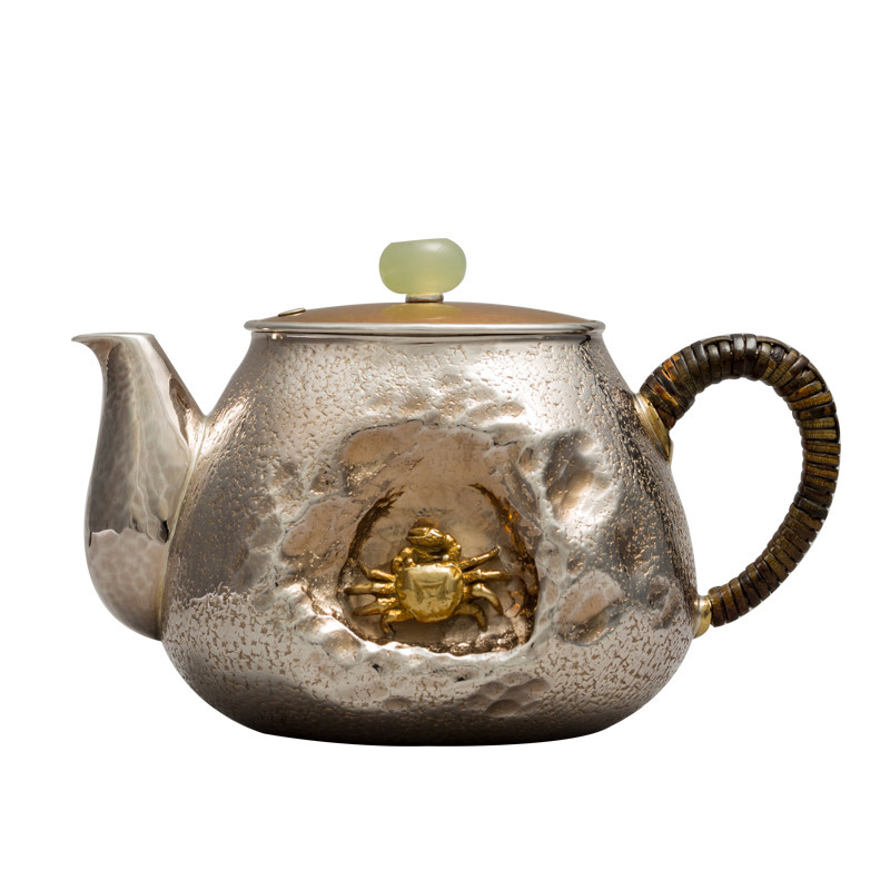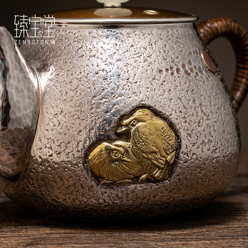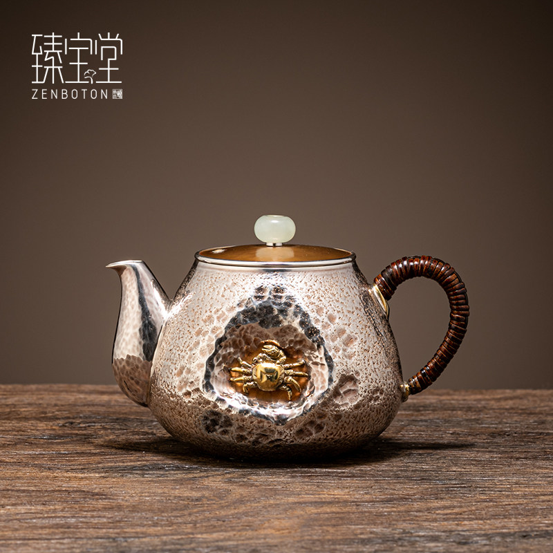 Zhenbao Hall 9999 foot silver plain teapot pure hand hammer set with small teapot kung fu tea set for old silver pot