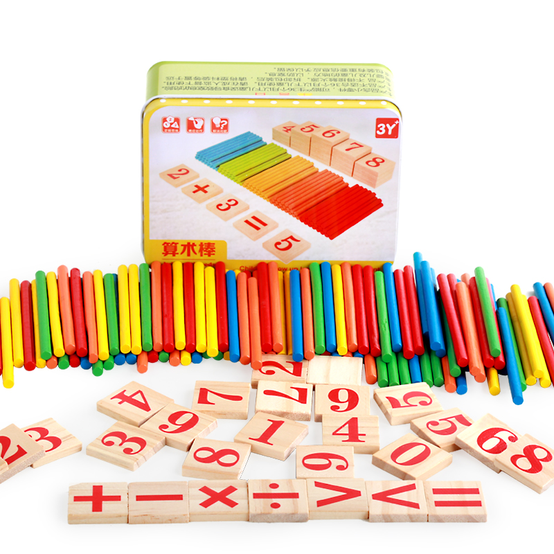 Digital stick Early teaching Puzzle Aids Baby 2-7 years of age Pre-wooded count sticks Kindergarten Iron box Number of bars