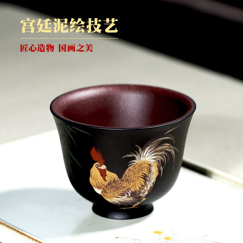 Famous Liansheng mud drawing Yixing purple sand cup cup small single cup chicken powder pure hand-made tea cup