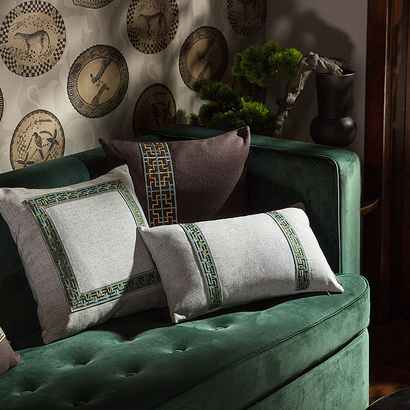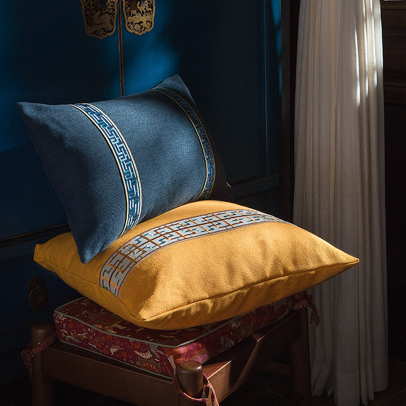 New Chinese Modern Minimalist Cloth Art Embroidery Hug Pillow Cover Waist Pillow Close To Pillow Solid Wood Sofa Leaning Pillow Red Wooden Chair Cushion