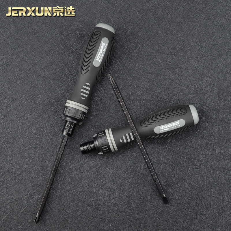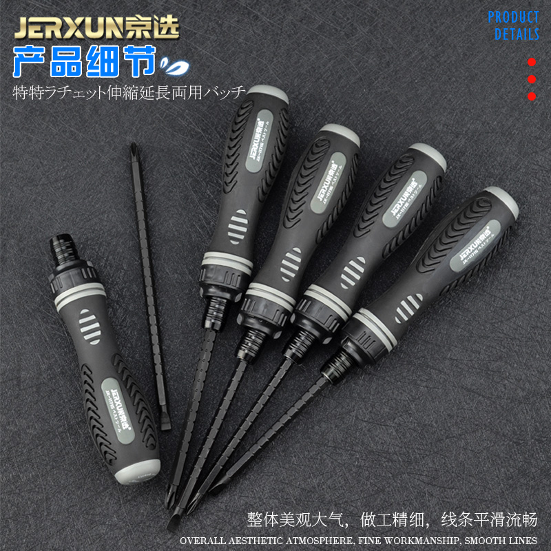Jingxuo ratchet telescopic dual-purpose screwdriver cross head multi-function household flat head screwdriver plum blossom screwdriver