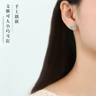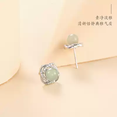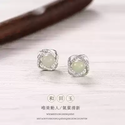 S925 sterling silver and Tian jade ear needle female original new earrings Japanese and Korean temperament Mori Net red ear jewelry lover gift