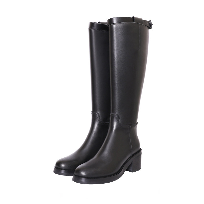 (summer small days) genuine leather coarse heel high heel boot strap buckle riding boots though knee-high cylinder boot long cylinder boot female boot