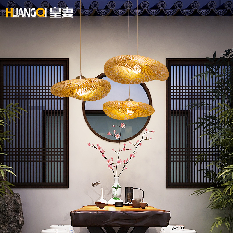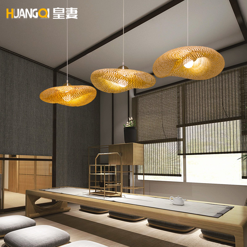 Bamboo chandelier tea room Zen light new Chinese-style homestay hotel Southeast Asian style tea house light Japanese rattan light
