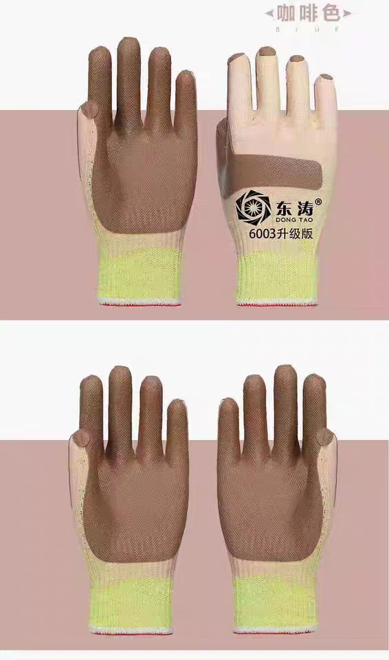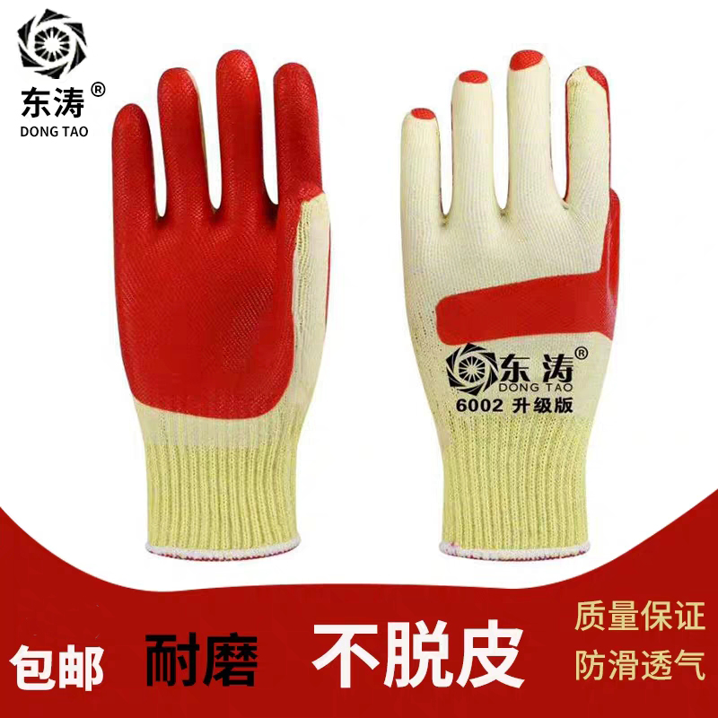 Dongtao 6002 6003 dip-coated film labor insurance gloves high elasticity wear-resistant spun yarn glue line double-sided adhesive outdoor gloves
