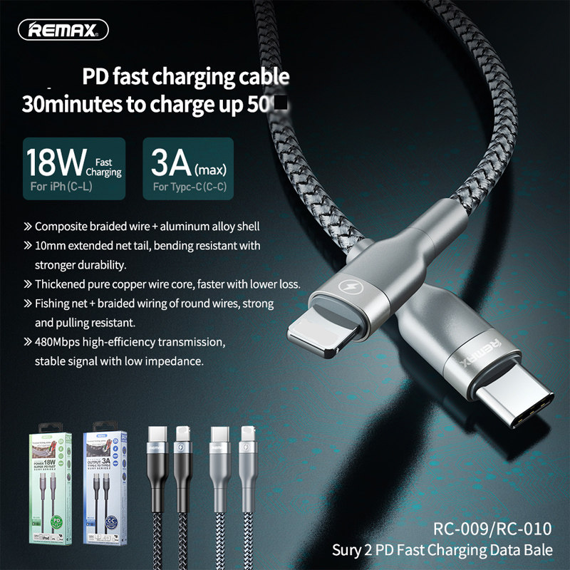 REMAX PD 20W flash-charging data line usb-c to ping fruit data transfer charging double-type-C 100W mobile phone notebook flat fast charging USB 3A
