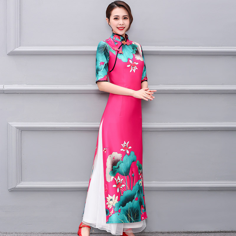 White pants L5073 single-piece qipao L5073 qipao with white pants