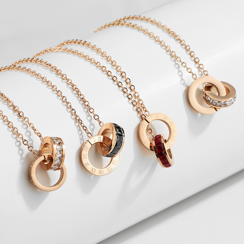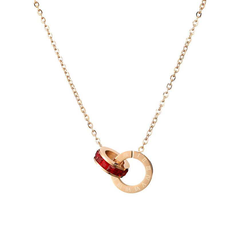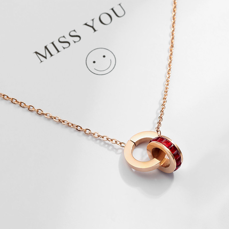 New Tidal Web Red Necklace Woman Double Ring Letters Rose Color Gold Lock Bone Chain Small Crowdbrand Brief Senior Sensation Necklace