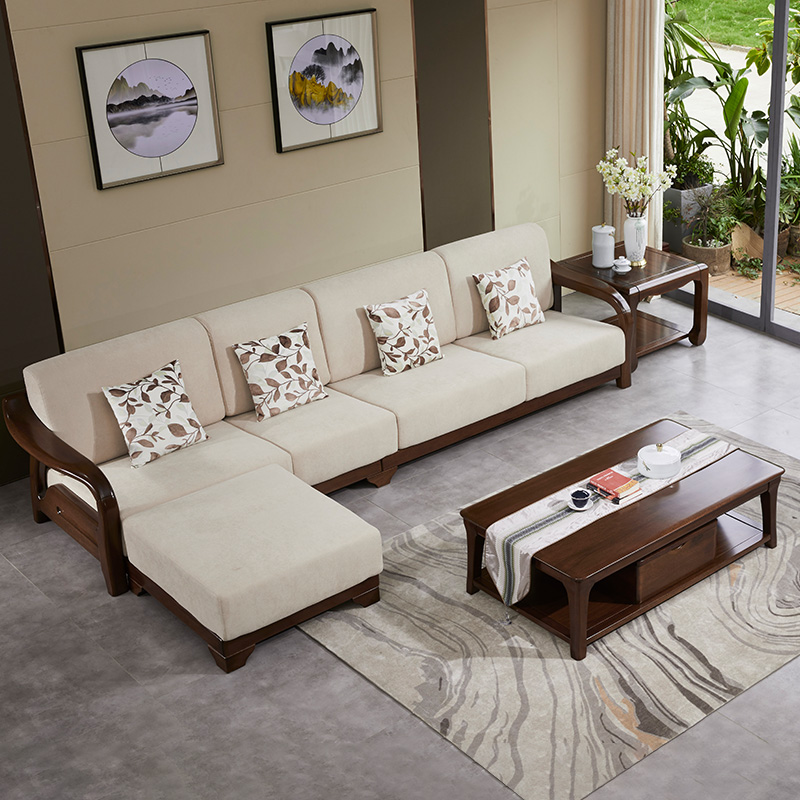 Black Walnuts Corner Solid Wood Sofa Small Household Type Chinese Modern Guido Living Room Adult Furniture 123 Composition Custom
