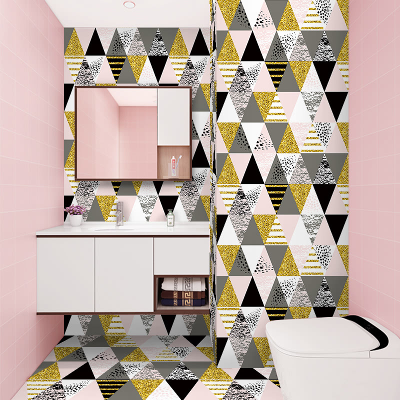 Self-adhesive wallpaper mesh red ins Decorative Wall Sticker Bathroom kitchen Makeup Room Waterproof Non-slip Floor Sticker tile sticker paper