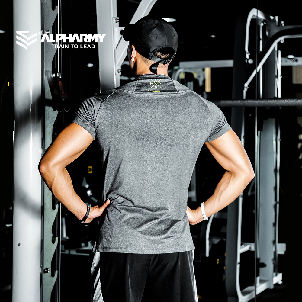 Alpharmy loose exercise T-shirt men fitness training strong resilience to short sleeves and sweat sweating tops