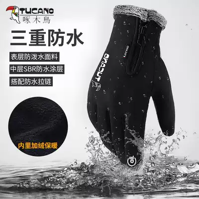 Riding gloves for men and women in autumn and winter outdoor touch screen locomotive waterproof windproof and warm plus velvet ski sports gloves