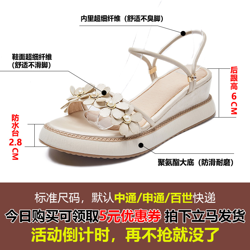 Wedge heel flower sandals women's summer 2021 new two-wear fashion thick-bottom muffin bottom fairy wind Roman flat high heel