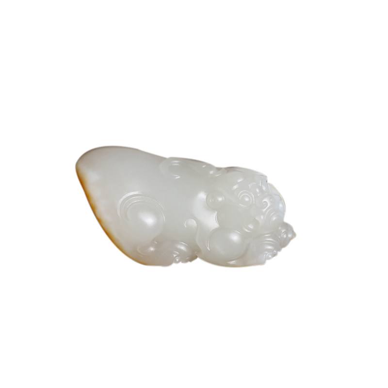 (Pixiu Nafu) Xinjiang Hetian Jade Seed Material First Grade White Yellow Skin Single Seed Pendant Zhuoyu Pavilion