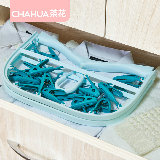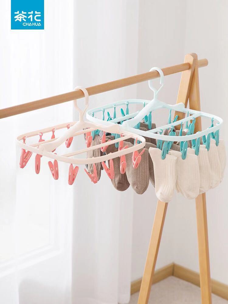 Tea flower folding hanger sub-hooks Home multifunction windproof sundry socks Children's cool clothes Multi-clip clothes hanger