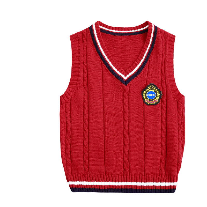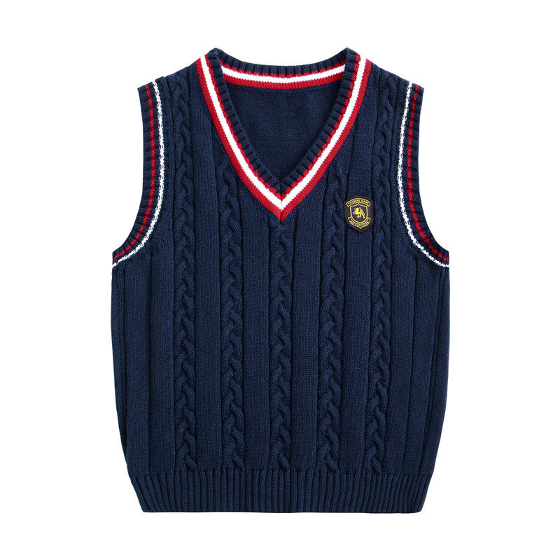 Spring and autumn boys sweater vest children's knitted vest thin style girls baby shoulder college style school uniform cotton