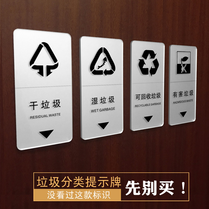 Garbage classification logo stickers high-grade garbage signage Shanghai garbage classification reminder card dry and wet garbage placard