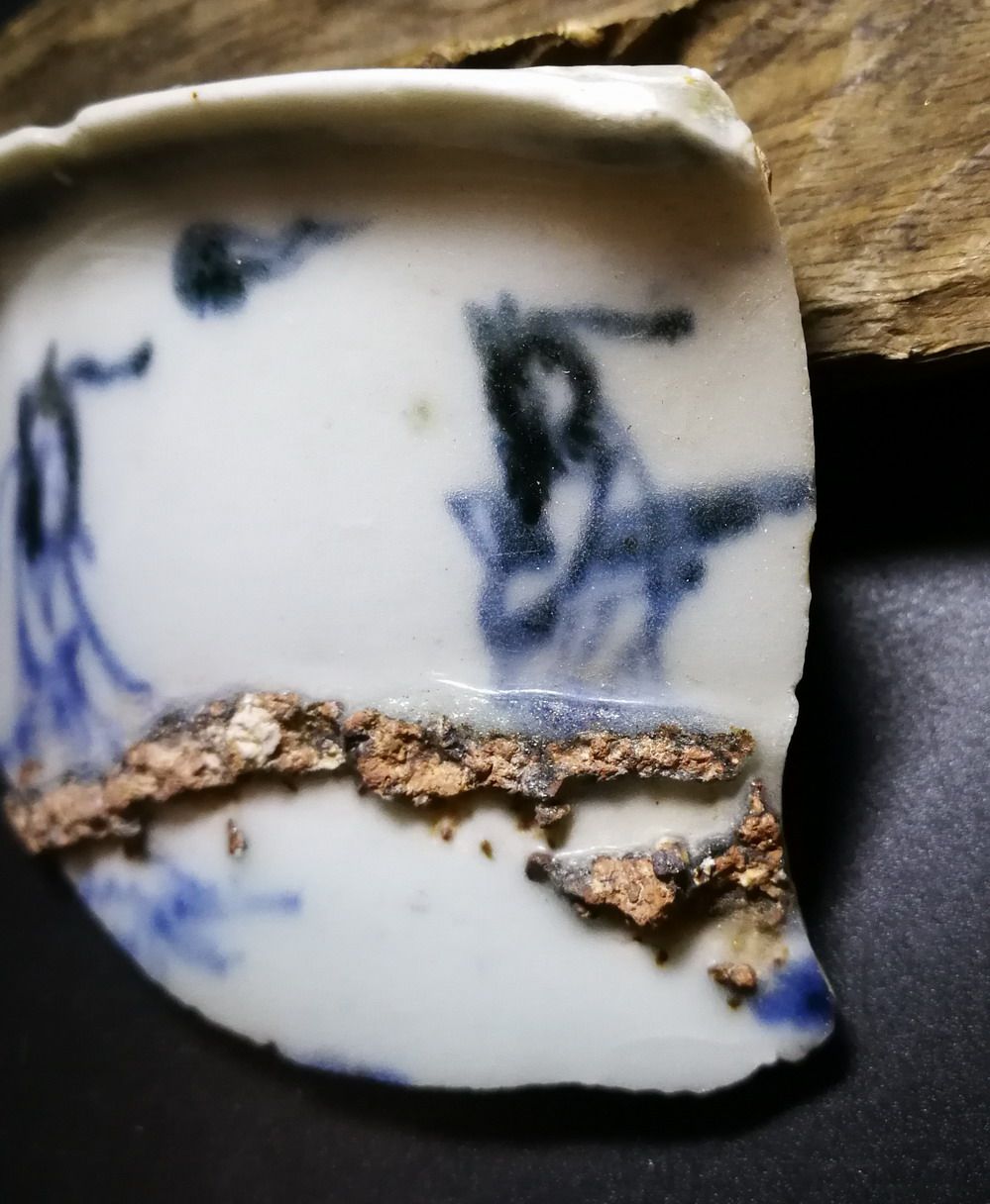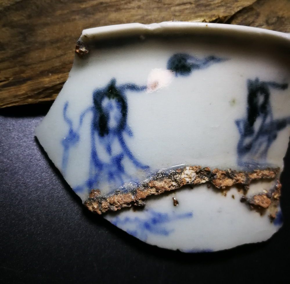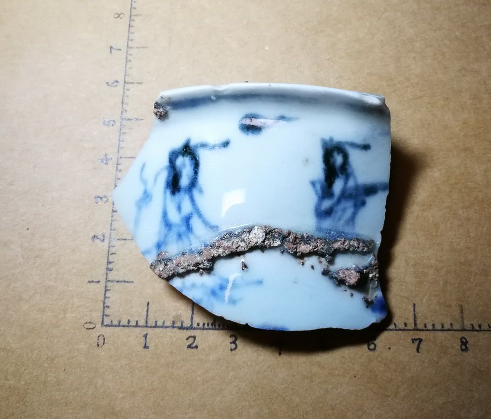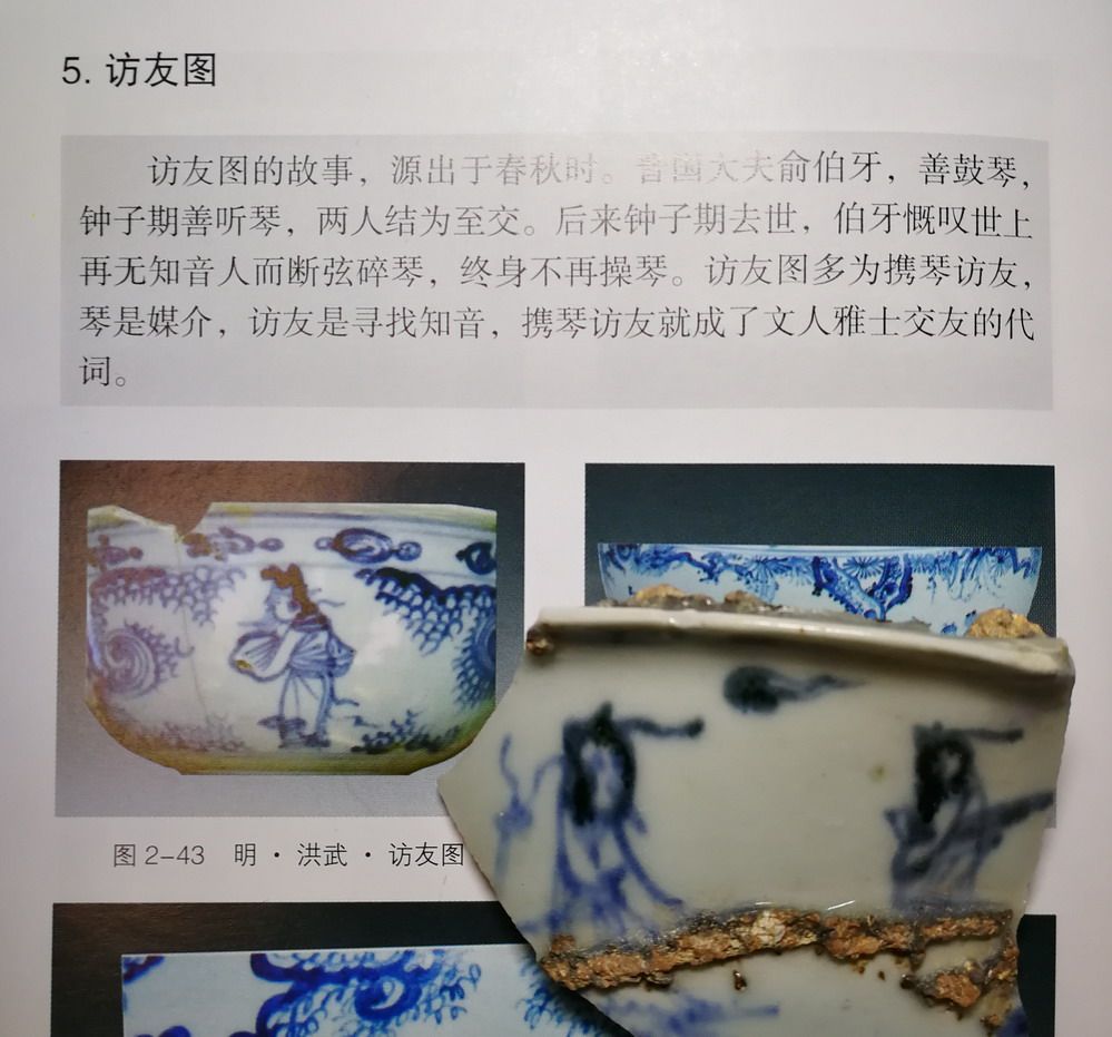 Figure 23 Specimen of broken porcelain pieces of blue and white ancient porcelain pieces in the early Ming Dynasty With a picture of visiting friends with a qin