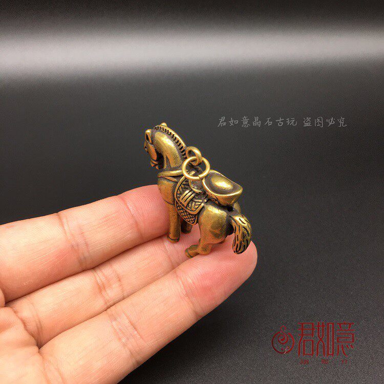 Lucky ingot Small copper horse pendant Brass Immediately get rich keychain Immediately ingot small horse small ornament Bronze