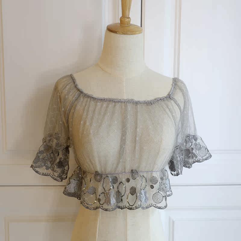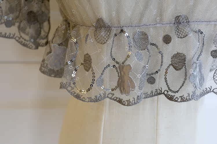 Small Bear bright lace lolita lolita dress Japanese soft girl in grey Nehitch Shirt Lotus Leaf Side Bubble Cuff Short
