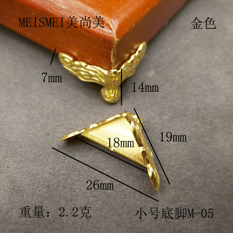 Small simulation gold sole alloy angle furniture soles decorated sole foot of wooden box four sides support sole foot 19mm