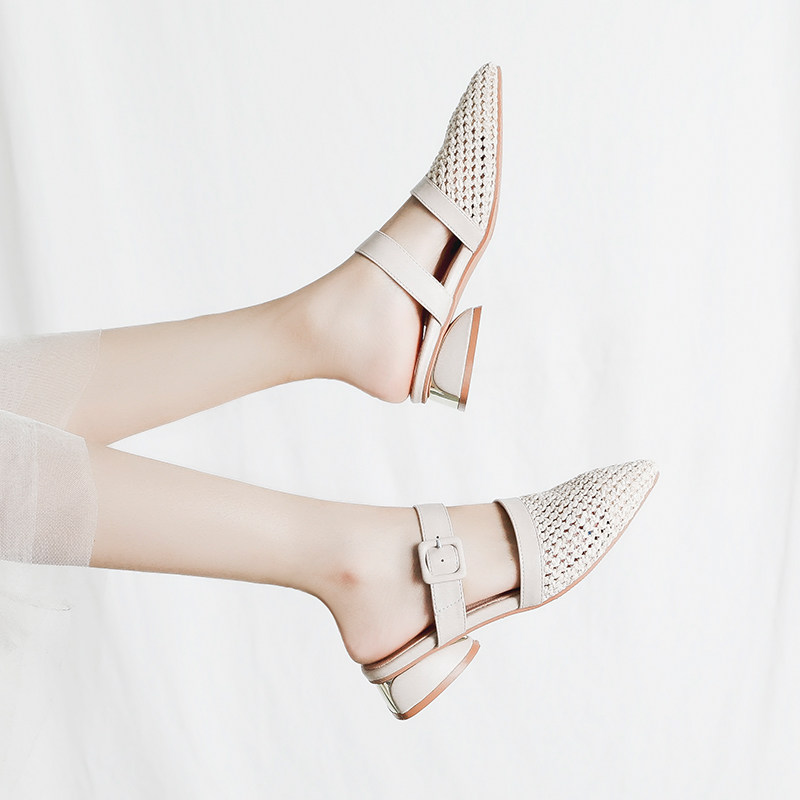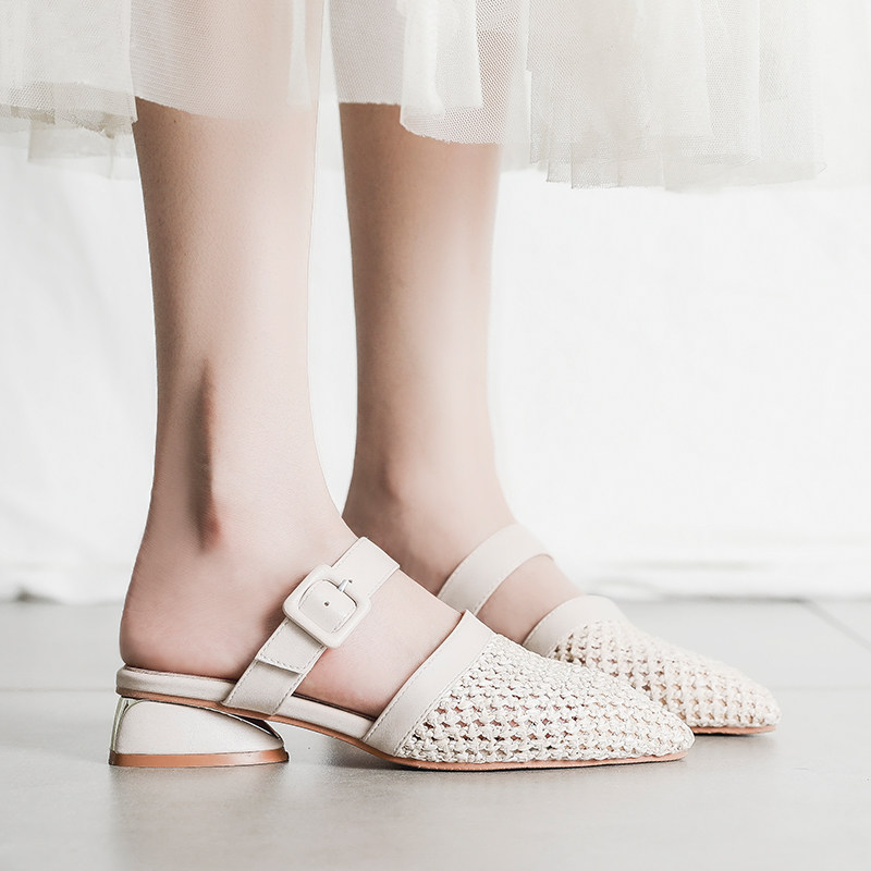 2022 Spring new hollowed-out Baotou sandal women's coarse heels net red fashion outwear 100 hitch Mueller semi-slippers women
