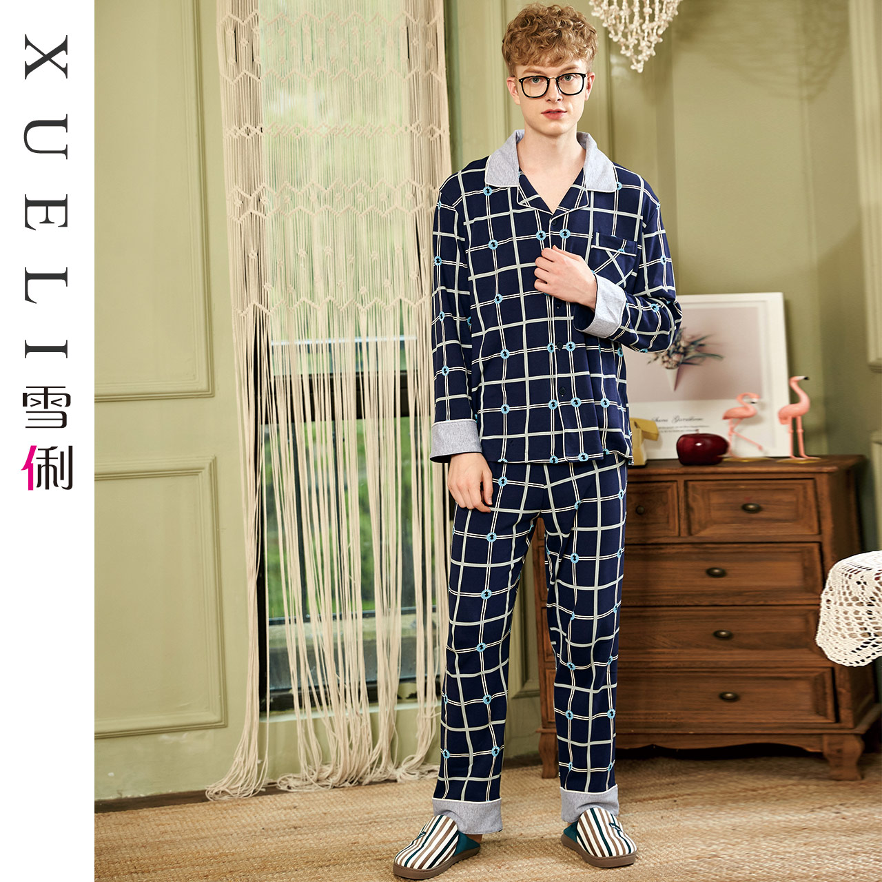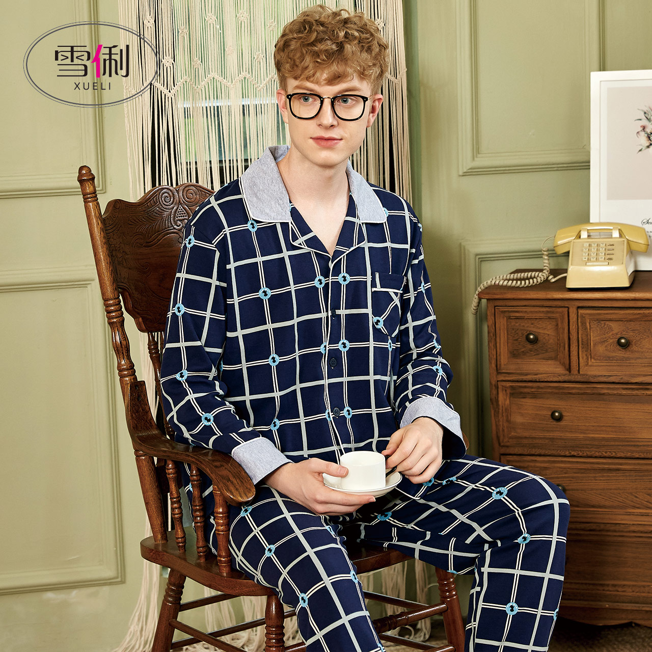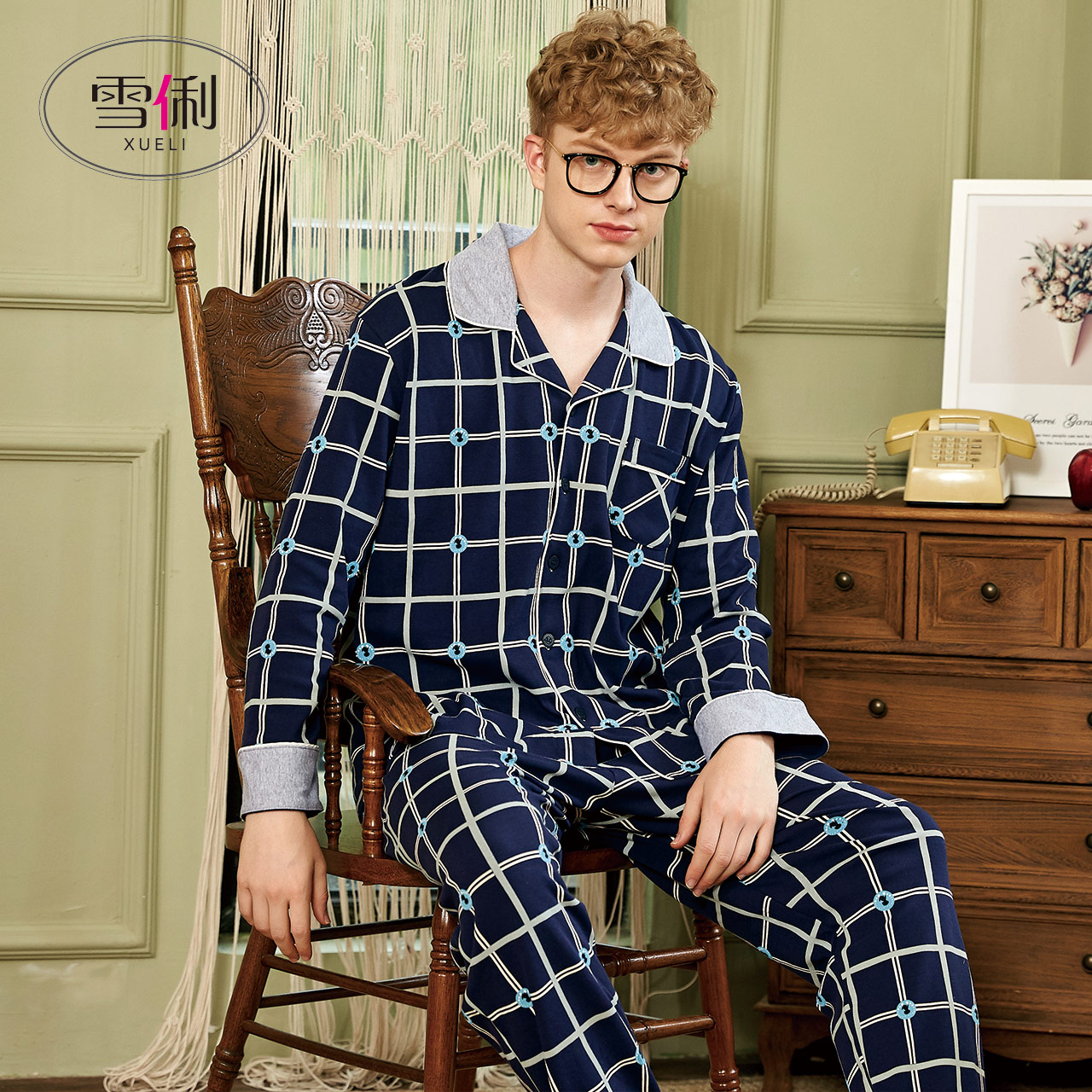 Snow Li pajamas men's spring and autumn cotton long sleeve men's home clothes cotton youth thick autumn and winter plus size set