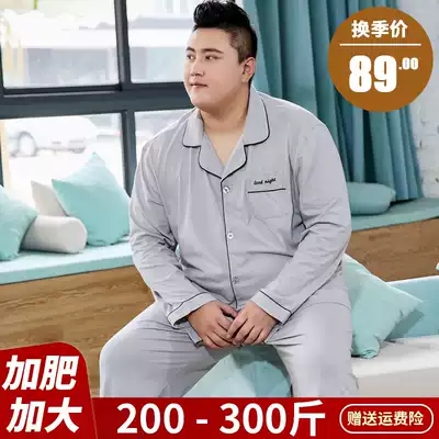 Spring and Autumn Seasons Fat Plus Size Pajamas Men Long Sleeve Cotton Fat Man Large Fat Men Large Fat Home Clothes Set Cardigan