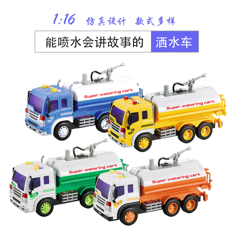 Blue and white sprinkler that can spray water Green and white sprinkler that can spray water Orange and white sprinkler that can spray water Yellow and white sprinkler that can spray water