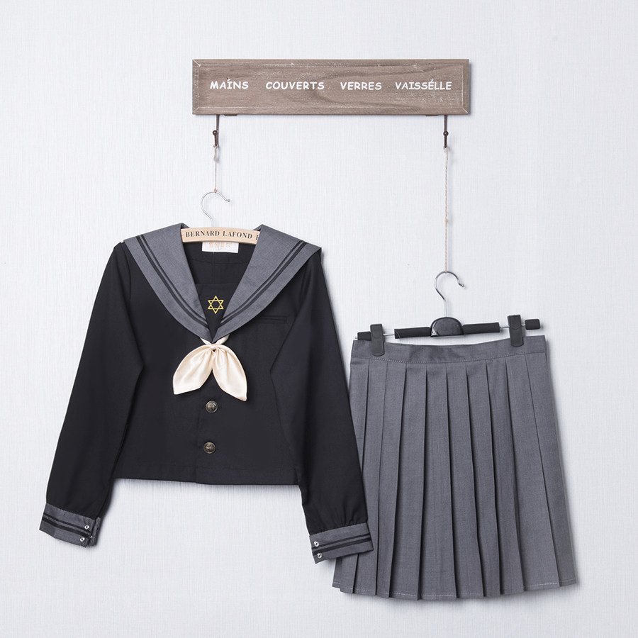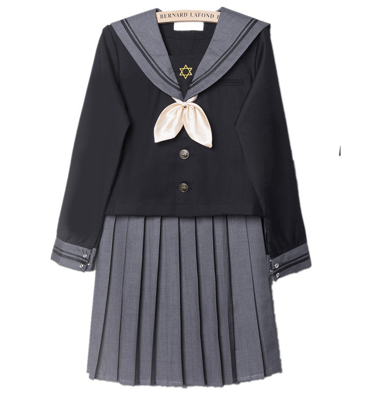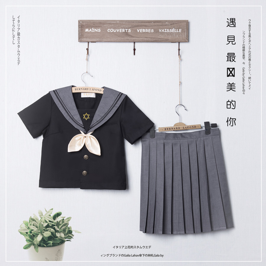 Dark Black Teenage Girl Embroidered Orthodox Two Bento JK Uniformed Sailor Guan Sai-Young College Wind Soft-girl Suit Plus Size Women
