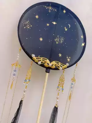 (Stars)Long-handled group fan finished ancient style bronzing with tassels palace fan Hanfu long fan DIY handmade materials