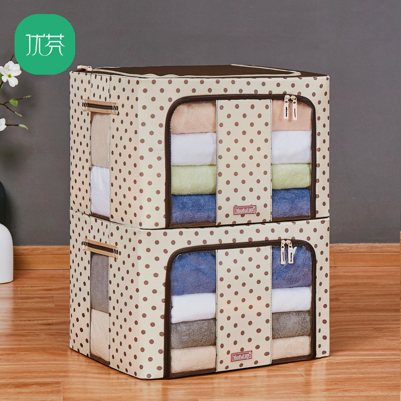 Euphne Oxford Cloth 66L Clothing Finishing Household Thickened Tarpaulin Art Folding Large Double Window Steel Frame Storage Box