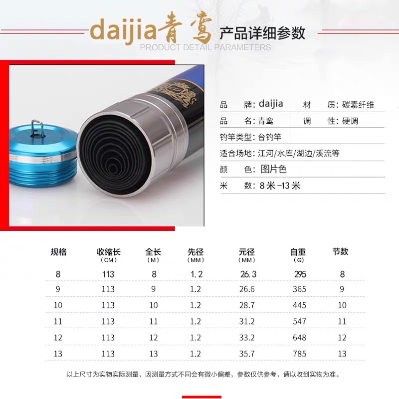 Dai Jiaqingluan long rod 9 meters 10 meters 11 meters 12 meters 13 meters ultra-light hard fishing rod powerful hand rod to explore the rivers and lakes
